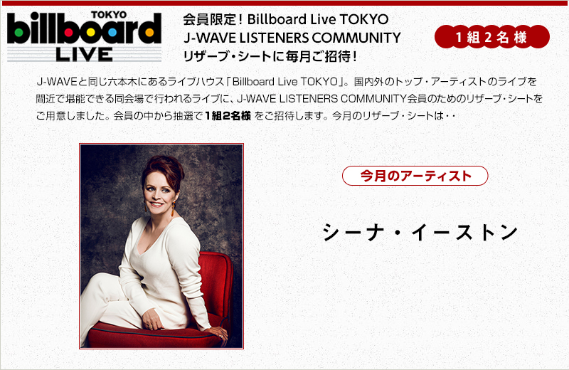 J Me会員限定 Billboard Live Tokyo リザーブ シートに毎月ご招待 3月は シーナ イーストン